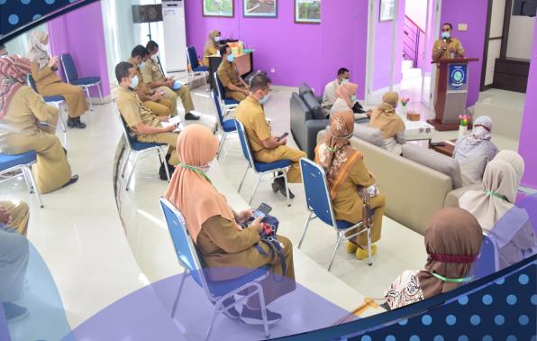 Merawang, Bangka – Kementerian Kesehatan Republik Indonesia, yakni Direktur Kesehatan Kerja dan Olahraga beserta Tim bersama Tim Dinas Kesehatan Provinsi Kepulauan Bangka Belitung hadir di RSUD Dr. (H.C) Ir. Soekarno Provinsi Kepulauan Bangka Belitung. Kedatangan tamu istimewa ini disambut hangat oleh seluruh pejabat Tim Manajemen RSUD Dr. (H.C) Ir. Soekarno di Gedung Eko Maulana Ali, Senin (14/6/2021).