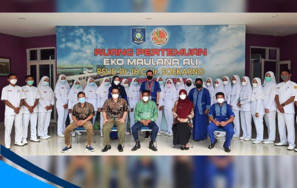 Kedatangan Direktur Akademi Keperawatan (Akper) Pangkalpinang beserta rombongan dalam rangka mengantarkan 24 Mahasiswa Akademi Keperawatan (Akper) Pangkalpinang yang akan melaksanakan Kegiatan Pengalaman Belajar Klinik (PBK) pada Mata Kuliah Keperawatan Dasar. Kegiatan Pengalaman Belajar Klinik (PBK) ini akan dilaksanakan pada tanggal 15 s.d 29 Juli 2021 di Ruang Rawat Dewasa (RRD) VIP, Kelas 1, Kelas 2, Kelas 3 RSUD Dr. (H.C) Ir. Soekarno, yang terbagi kedalam 3 (tiga) kelompok.