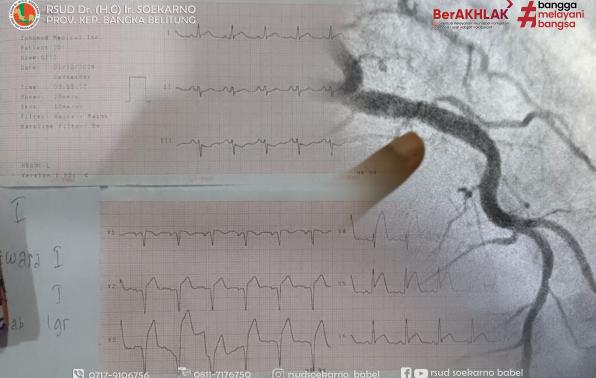 Dokter Spesialis Jantung beserta Tim Cathlab RSUD Dr. (H.C) Ir. Soekarno Provinsi Kepulauan Bangka Belitung (RSUD Soekarno Babel) melakukan tindakan kateterisasi jantung (pemasangan ring) dan berhasil selamatkan pasien serangan jantung. Tindakan tersebut dilakukan diruangan Cathlab RSUD Soekarno Babel, Jumat (12/01/2024).