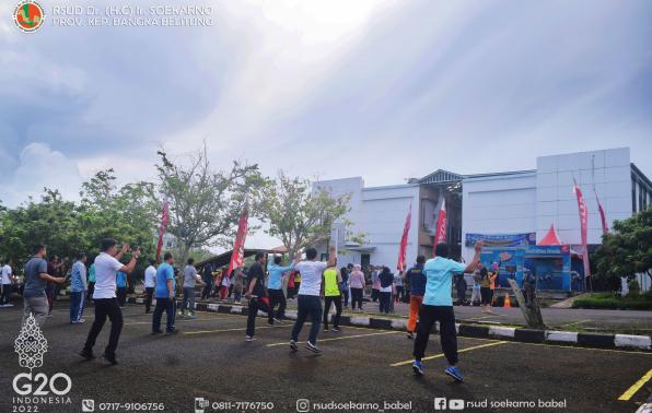 Kegiatan ini diawali dengan senam pagi bersama para pegawai dan tenaga kesehatan RSUD Dr. (H.C) Ir. Soekarno Provinsi Kepulauan Bangka Belitung, pemotongan tumpeng sebagai bukti syukur 10 tahun telah berdirinya RSUD Soekarno, pembagian hadiah doorprize dan foto bersama.