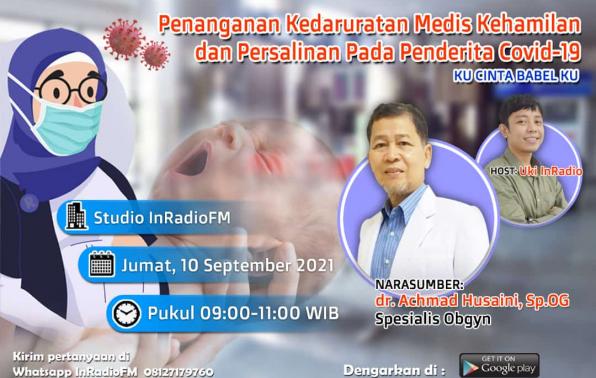 Talkshow Kesehatan pada Program Ku Cinta Babel Ku kali ini yang dilaksanakan by phone membahas tentang “Penanganan Kedaruratan Medis Kehamilan dan Persalinan pada Penderita Covid-19” bersama dr. Achmad Husaini, Sp.OG. (Dokter Spesialis Obgyn) yang bertugas di RSUD Dr. (H.C) Ir. Soekarno dan menjadi narasumber di Studio In Radio 97,6 FM Babel, Jumat (10/9/2021).