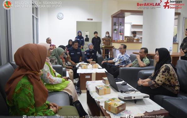 Merawang, BANGKA - RSUD Dr. (H.C) Ir. Soekarno Provinsi Kepulauan Bangka Belitung (RSUD Soekarno Babel) menerima kunjungan visitasi Tim Monitoring dan Evaluasi (Monev) Komisi Informasi Bangka Belitung (KI Babel). Direktur RSUD Soekarno Babel, dr. Ira Ajeng Astried hadir langsung menerima kunjungan tersebut didampingi Kepala Bagian Hukum, Humas dan Pelaporan, Arbian Eka Putra bersama Subkoordinator Humas dan Kemitraan, Afriza Farnevi, Subkoordinator Data dan Pelaporan, Marhoto dan staf RSUD Soekarno Babel lainnya di Ruang Lounge Dokter, Kamis (02/11/2023).