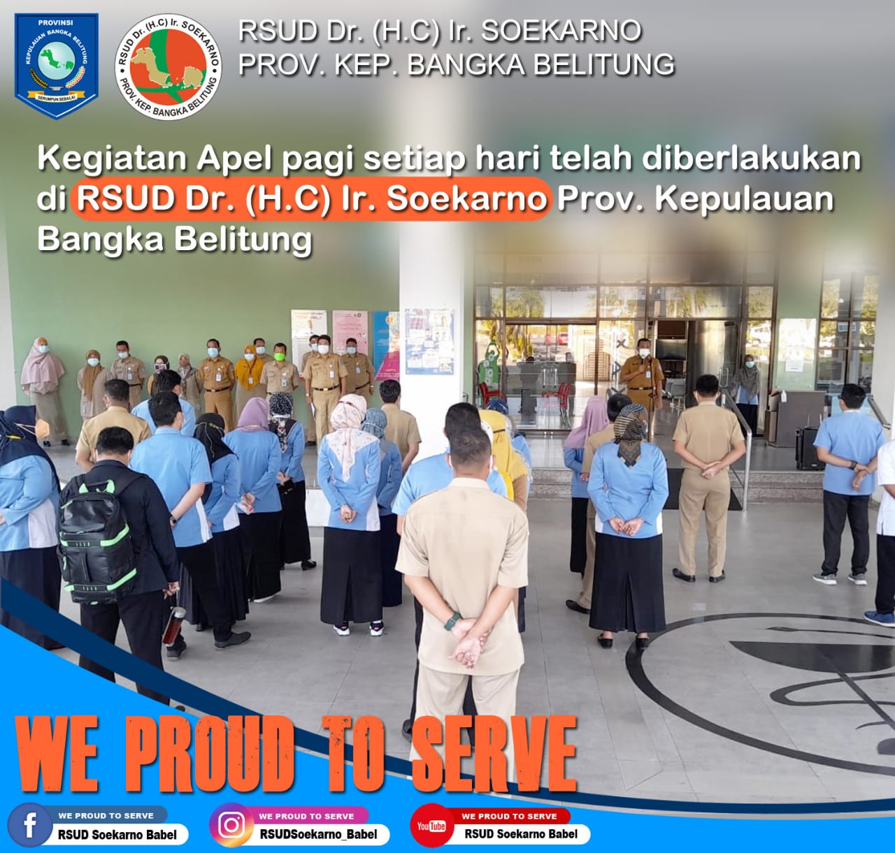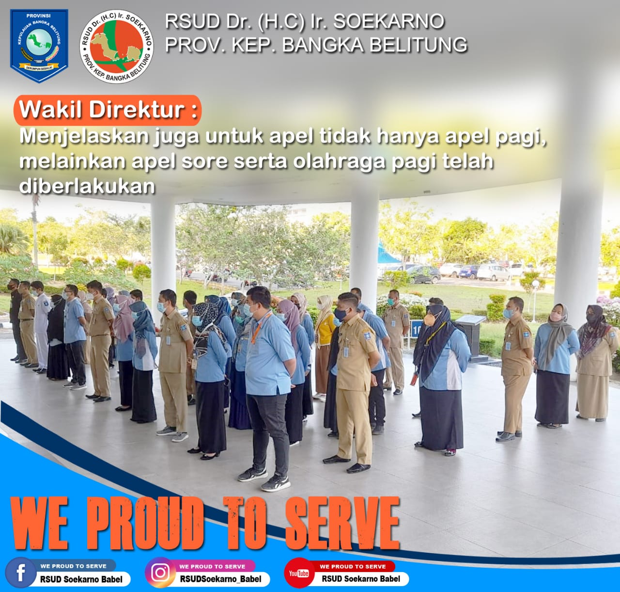 Pelaksanaan apel pagi & apel sore serta olahraga pagi diberlakukan kembali sesuai dengan Surat Edaran Gubernur Kepulauan Bangka Belitung Nomor : 800/0432/BKPSDMD/2021 tanggal 30 Juni 2021 menindaklanjuti Surat Menteri Pendayagunaan Aparatur Negara dan Reformasi Birokrasi Nomor : B/85/M.KT.00/2021 tanggal 14 Juni 2021 Hal : Himbauan Pelaksanaan Apel Pagi dan dalam rangka pelaksanaan sistem kerja pada masa Corona Virus Disease 2019 (Covid-19).