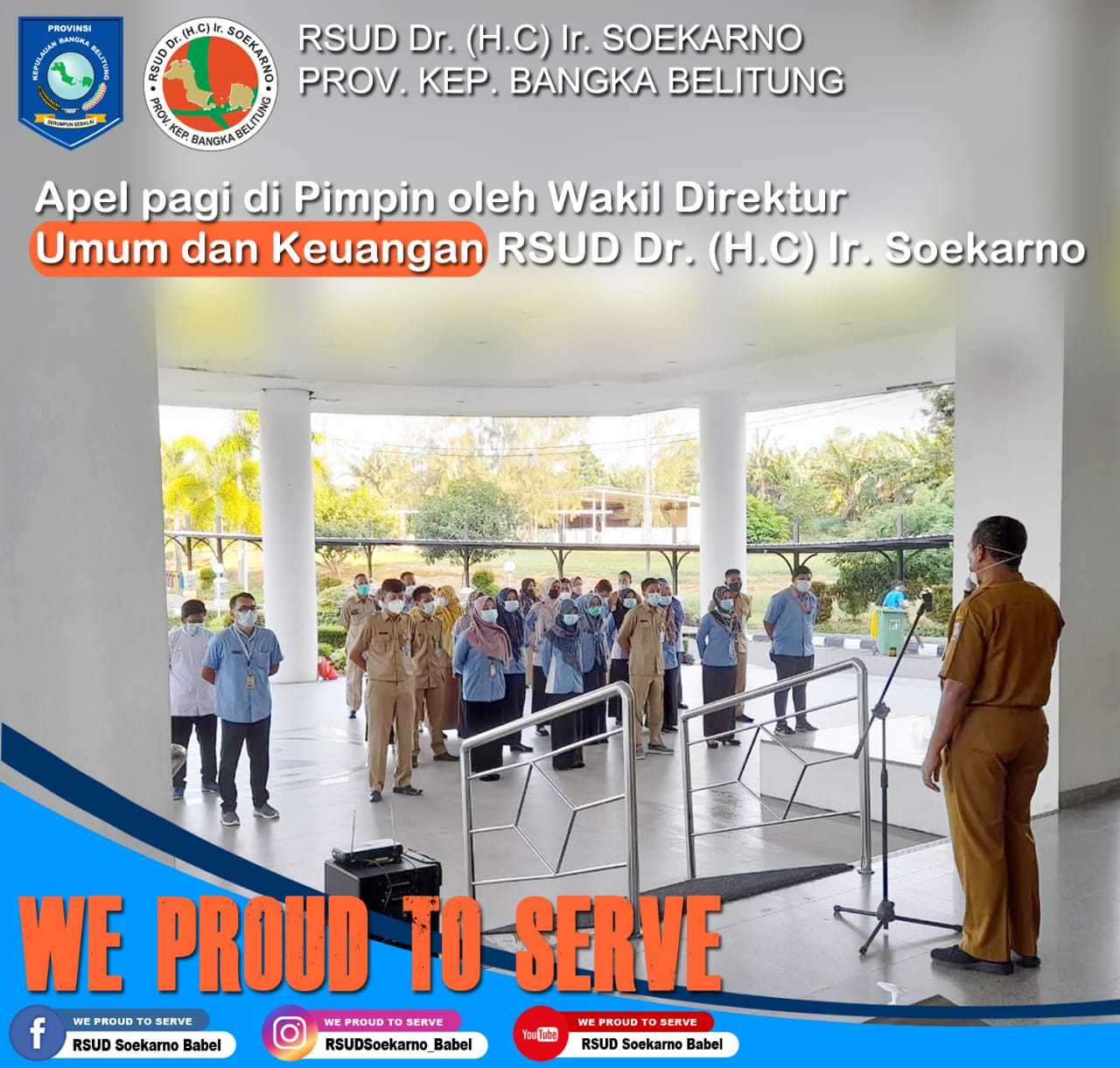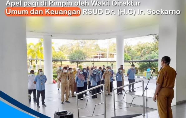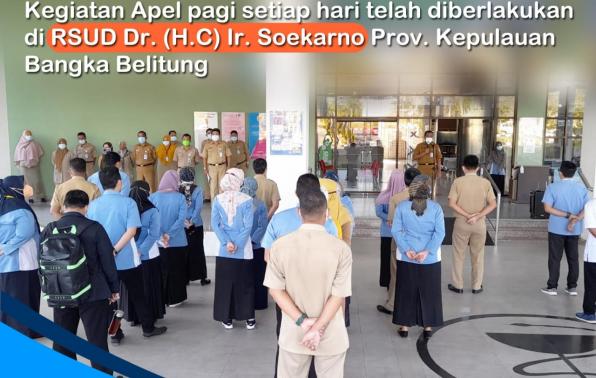 Pelaksanaan Apel Pagi Aparatur Sipil Negara (ASN) dan Pegawai Harian Lepas (PHL) di RSUD Dr. (H.C) Ir. Soekarno Provinsi Kepulauan Bangka Belitung, Selasa (6/7/2021).