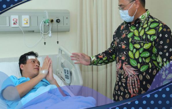 “Alhamdulillah hari ini saya berkesempatan mengunjungi saudara Supriyadi dan menyampaikan bantuan untuk aktivitas selama perawatan di Rumah Sakit,” ungkap Dr. H. Erzaldi Rosman Djohan, S.E, M.M di Ruang Perawatan VIP Kencana RSCM.