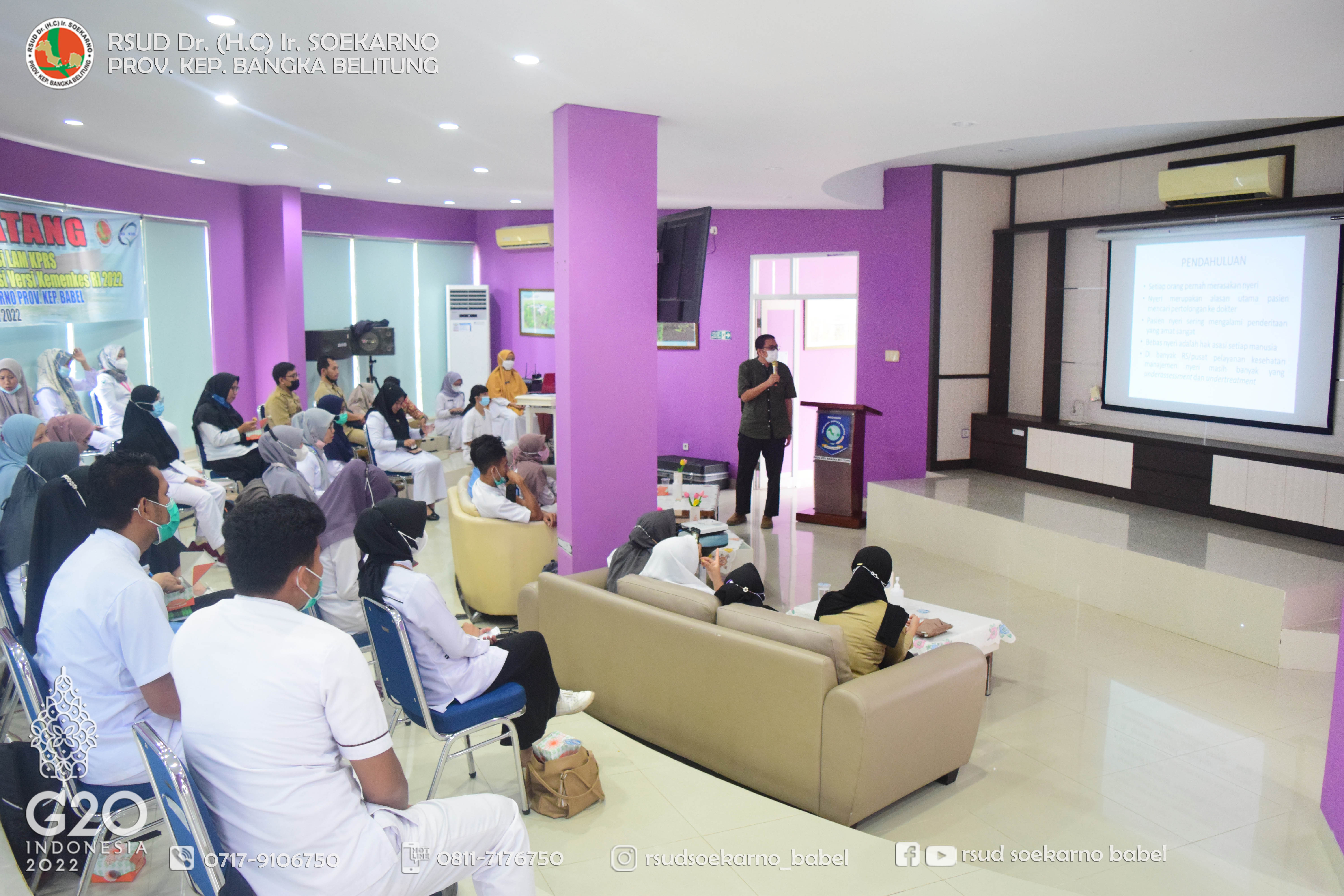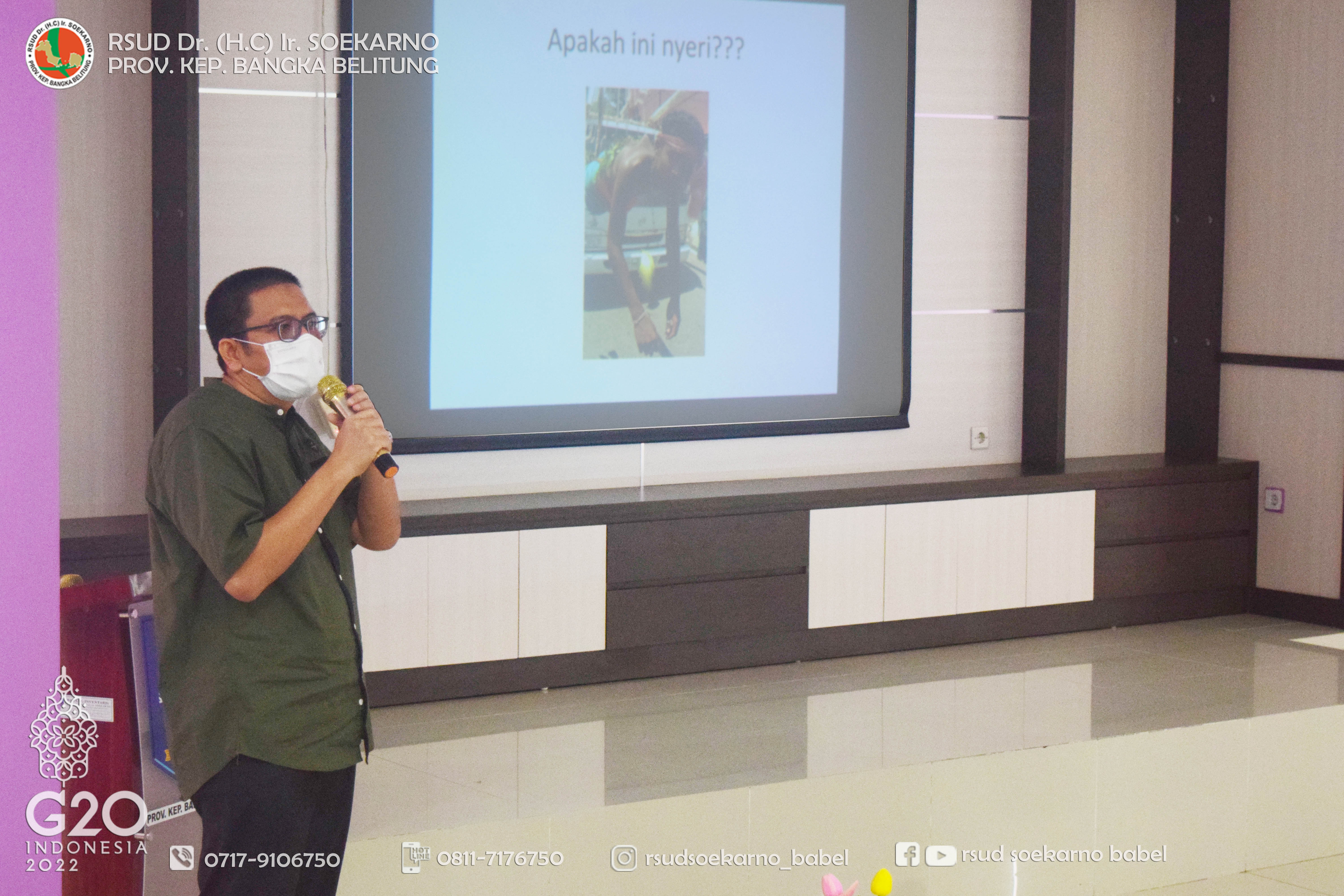 Untuk itu, RSUD Soekarno Babel melaksanakan Pelatihan/In House Training (IHT) yang harus diikuti oleh tenaga kesehatan yang bertugas di RSUD Soekarno Babel. Pelatihan ini yakni Pelatihan Dasar Wajib yang terdiri dari EWS (Early Warning System), BHD (Bantuan Hidup Dasar) serta Code Blue dan Manajemen Nyeri.