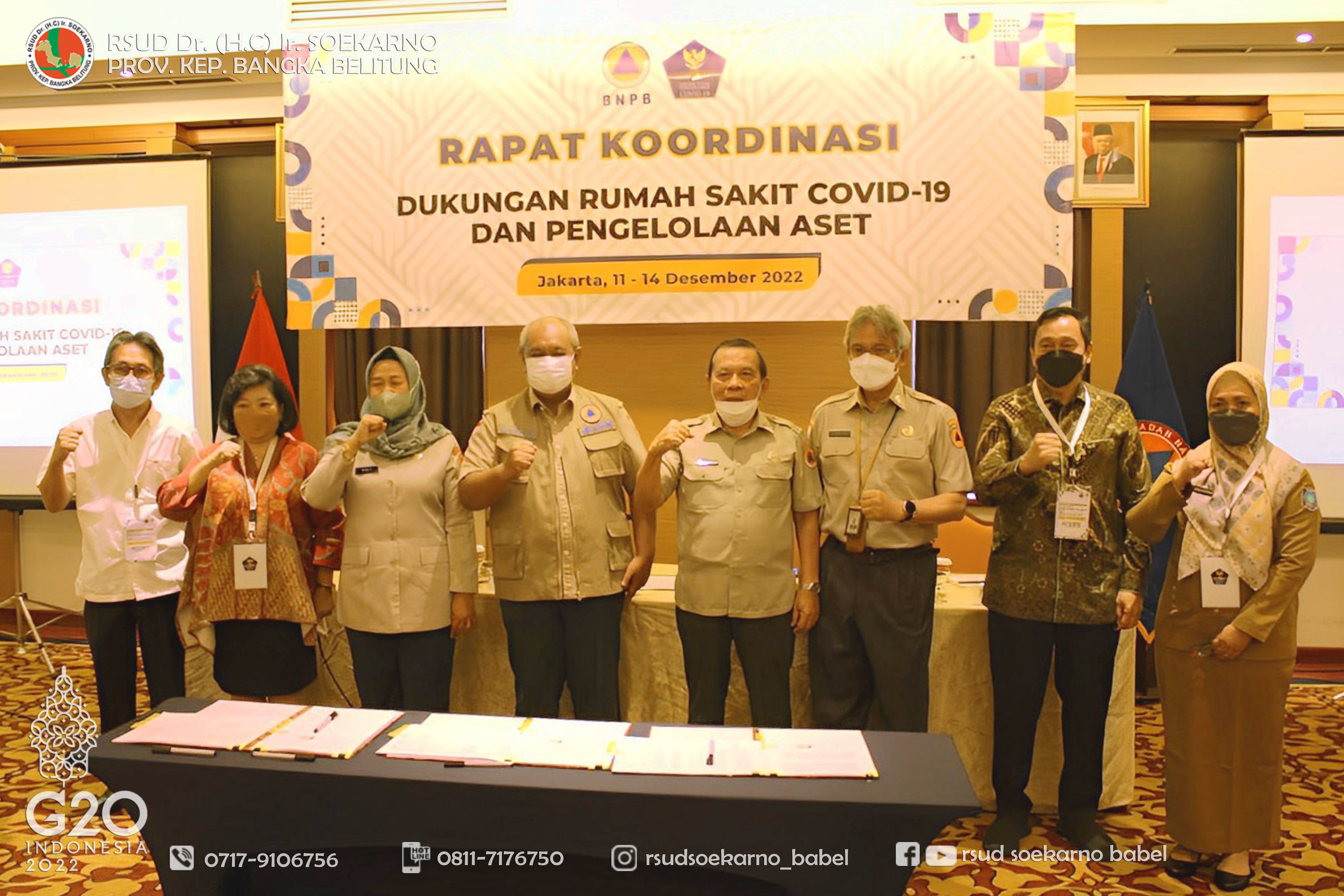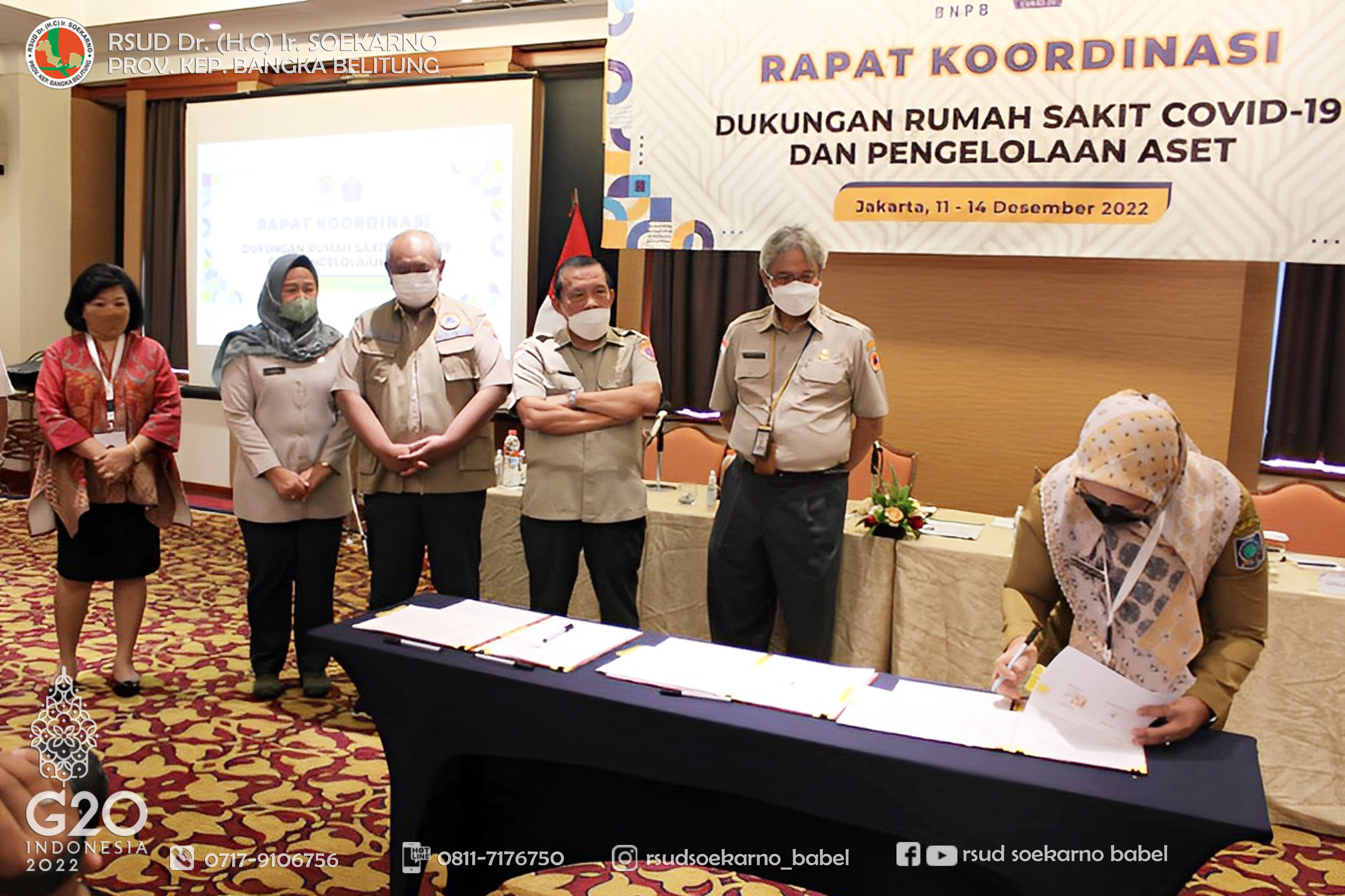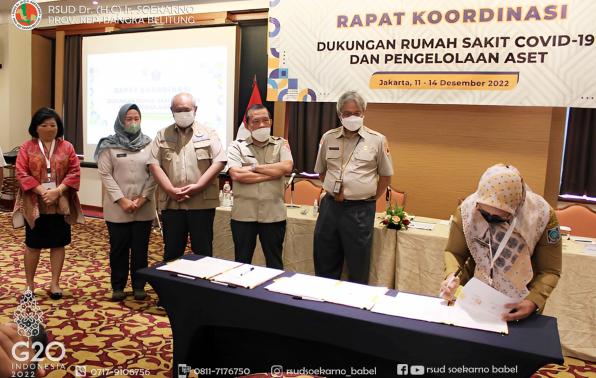 Plt. Direktur RSUD Dr. (H.C) Ir. Soekarno, dr. Ira Ajeng Astried, ikut serta dalam kegiatan tersebut dan memberikan paparan terkait Rumah Sakit Infeksi dan Karantina Covid-19, sekaligus menandatangani perjanjian hibah barang milik negara antara Badan Nasional Penanggulangan Bencana (BNPB) dengan RSUD Dr. (H.C) Ir. Soekarno Provinsi Kepulauan Bangka Belitung.
