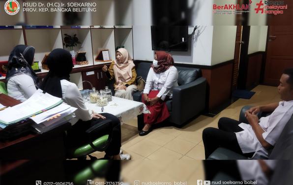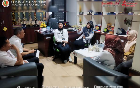 Direktur RSUD Soekarno Babel, dr. Ira Ajeng Astried menerima kunjungan Kepala Unit Donor Darah (UDD) Palang Merah Indonesia (PMI) Kota Pangkalpinang berserta tim di ruang direktur, Rabu (22/11/2023).