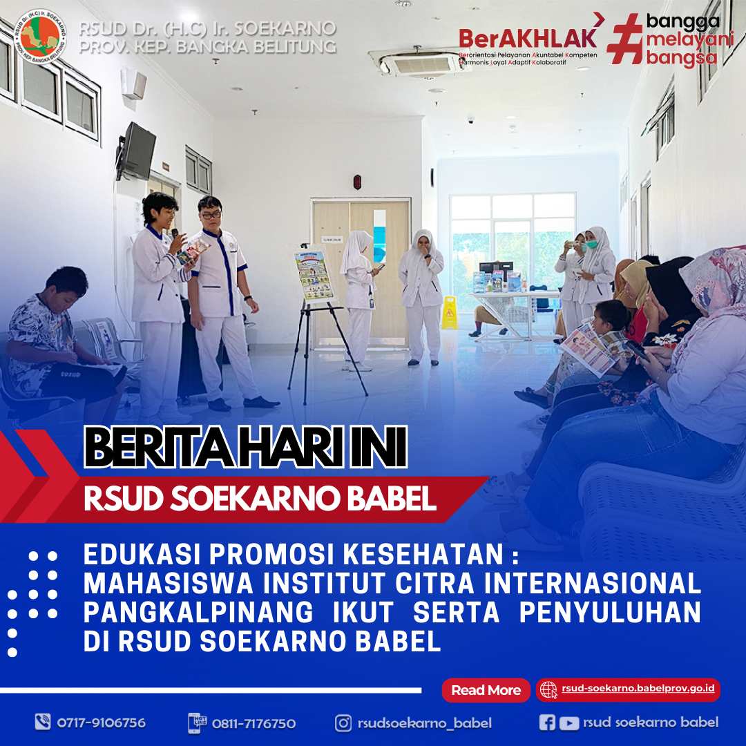 Kegiatan Penyuluhan Kesehatan Mahasiswa Institut Citra Internasional Pangkalpinang Bersama Instalasi PKRS RSUD Dr. (H.C) Ir. Soekarno Prov. Kep Babel Tentang DeMam Berdarah di Ruang Tunggu Poliklinik Umum Gedung B Tanggal 14 Januari 2024.