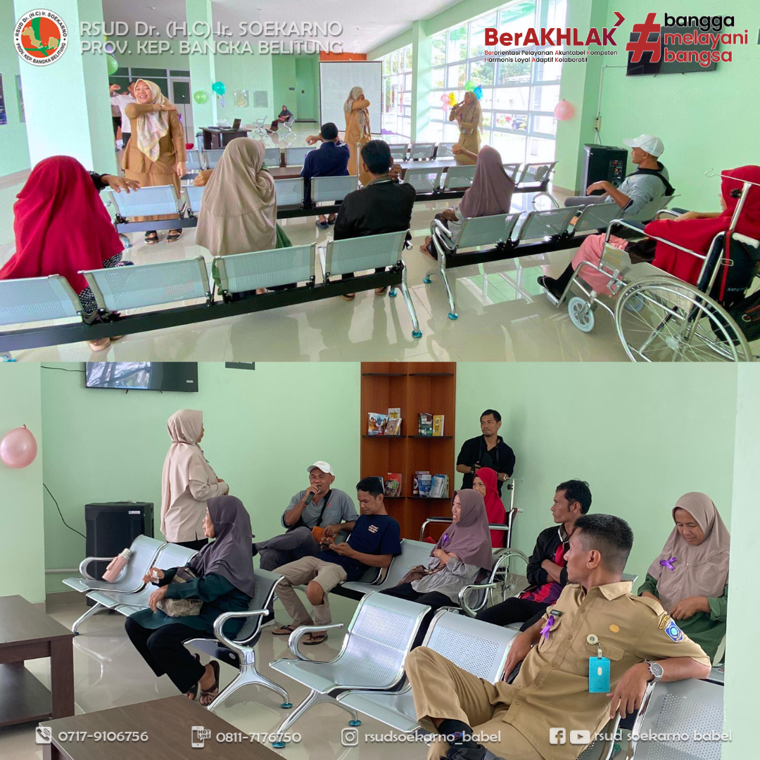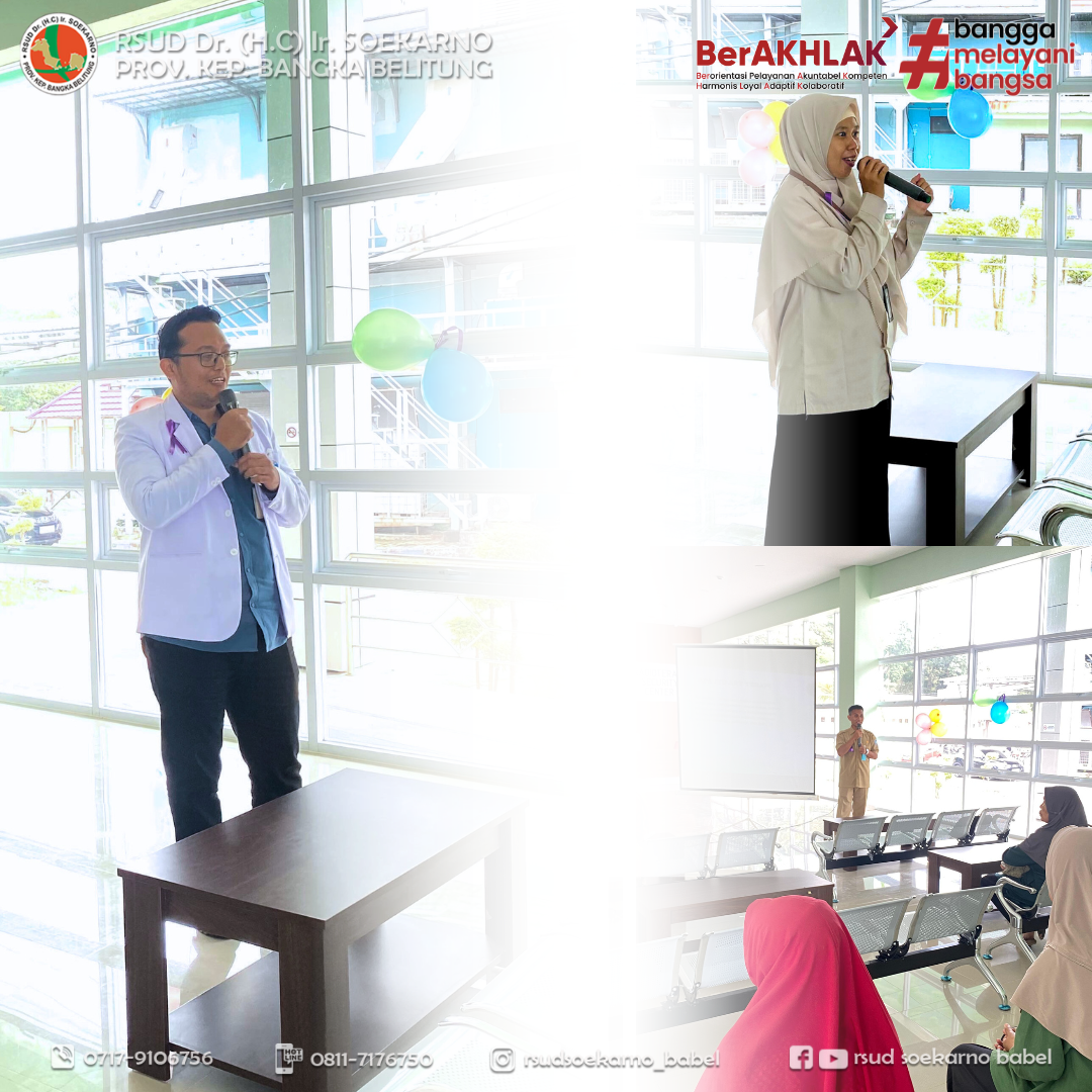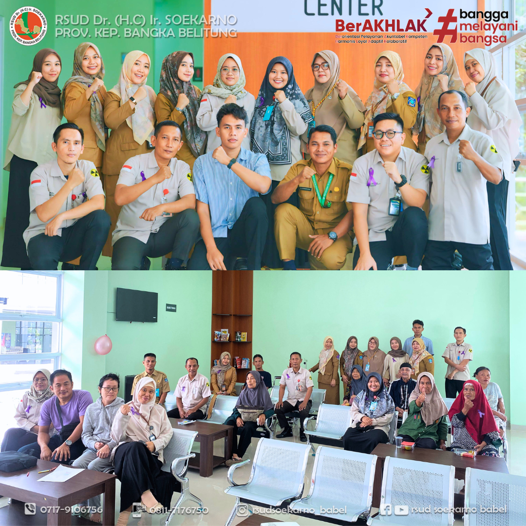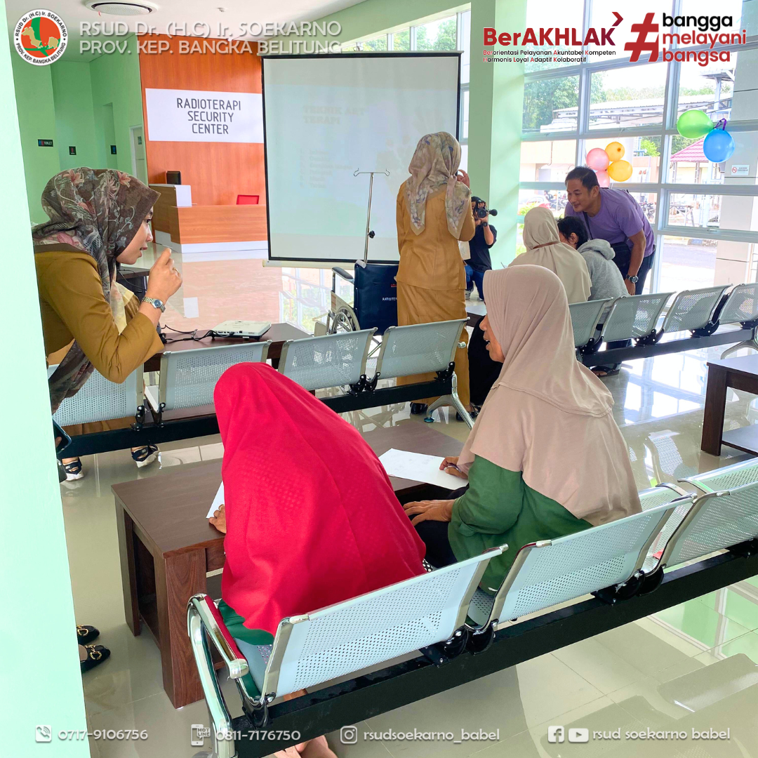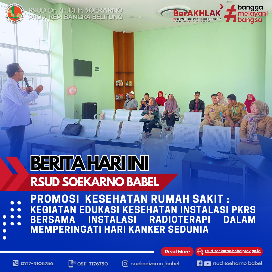 Kegiatan Penyuluhan Kesehatan Instalasi PKRS bersama Instalasi Radioterapi RSUD Dr. (H.C) Ir. Soekarno Prov. Kep Babel dalam rangka memperingati Hari Kanker Sedunia di Gedung Radioterapi Tanggal 04 Februari 2025 dengan narasumber Dokter Spesialis Onkologi Radiasi yaitu dr. Said Sabri Albana. Sp.Onk.Rad dan perawat radioterapi bernama Yeni Marlia Sari , S.Kep, Ners.