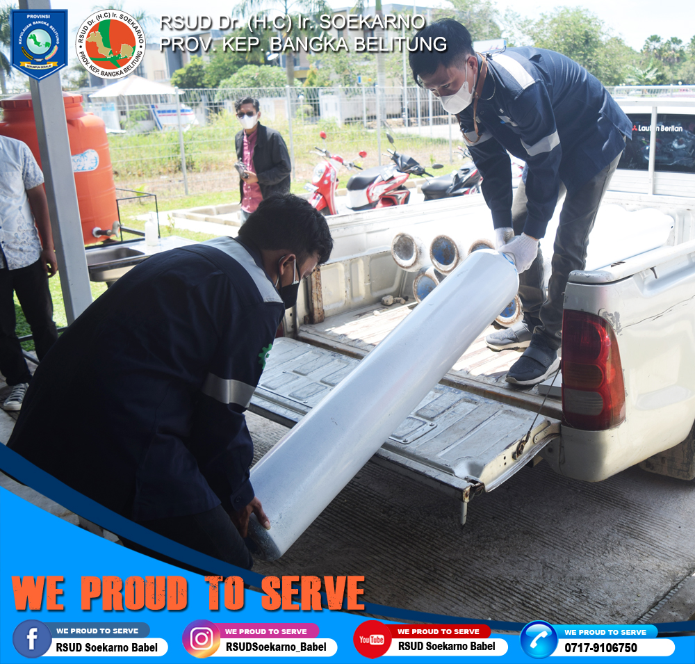 Merawang, Bangka - Rumah Sakit Infeksi dan Karantina Covid-19 Provinsi Kepulauan Bangka Belitung yang berada di lingkungan RSUD Dr. (H.C) Ir. Soekarno kembali mendapatkan bantuan pengisian tabung oksigen, Jumat (3/9/2021).