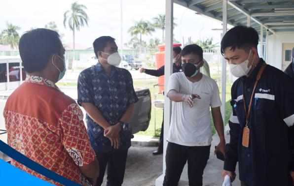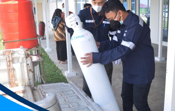 Kepala Bidang Pengawasan KIP dan Pengangkutan PT. Timah (Persero) Tbk, Ronanta Tarigan menyerahkan bantuan dan menyampaikan, bantuan 100 pengisian tabung oksigen medis yang disalurkan ini merupakan bantuan dalam program sosial perusahaan dalam upaya membantu percepatan penanganan Covid-19 terkhusus di Bangka Belitung.