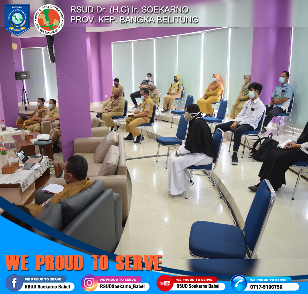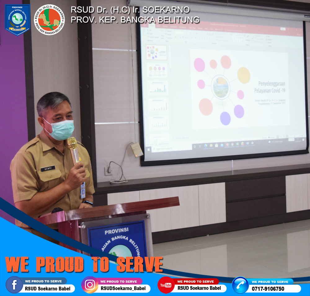 AIR ANYIR (07/09) Tim Manajemen Rumah Sakit Umum Daerah Dr. (H.C) Ir. Soekarno Provinsi Kepulauan Bangka Belitung mengadakan Rapat Koordinasi Manajemen terkait Pelayanan Pasien Covid-19 bertempat di Gedung Pertemuan Eko Maulana Ali RSUD Dr. (H.C) Ir. Soekarno Provinsi Kepulauan Bangka Belitung. Rapat dipimpin oleh Kepala Bidang Rekam Medik dan Akreditasi, H. M. Henri, SKM, M.Si.