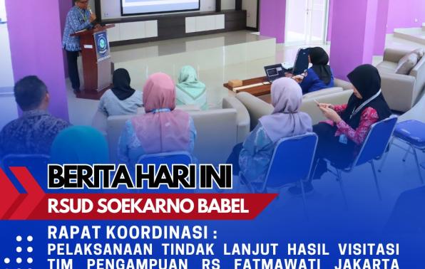 Kegiatan ini dilaksanakan dalam rangka menindaklanjuti hasil visitasi Pengampuan Kesehatan Ibu dan Anak oleh Tim Pengampuan Rumah Sakit Fatmawati Jakarta pada waktu sebelumnya di RSUD Soekarno Babel. Rapat berjalan dengan lancar dengan diskusi antara petugas kesehatan dengan tim manajemen RSUD Soekarno Babel.