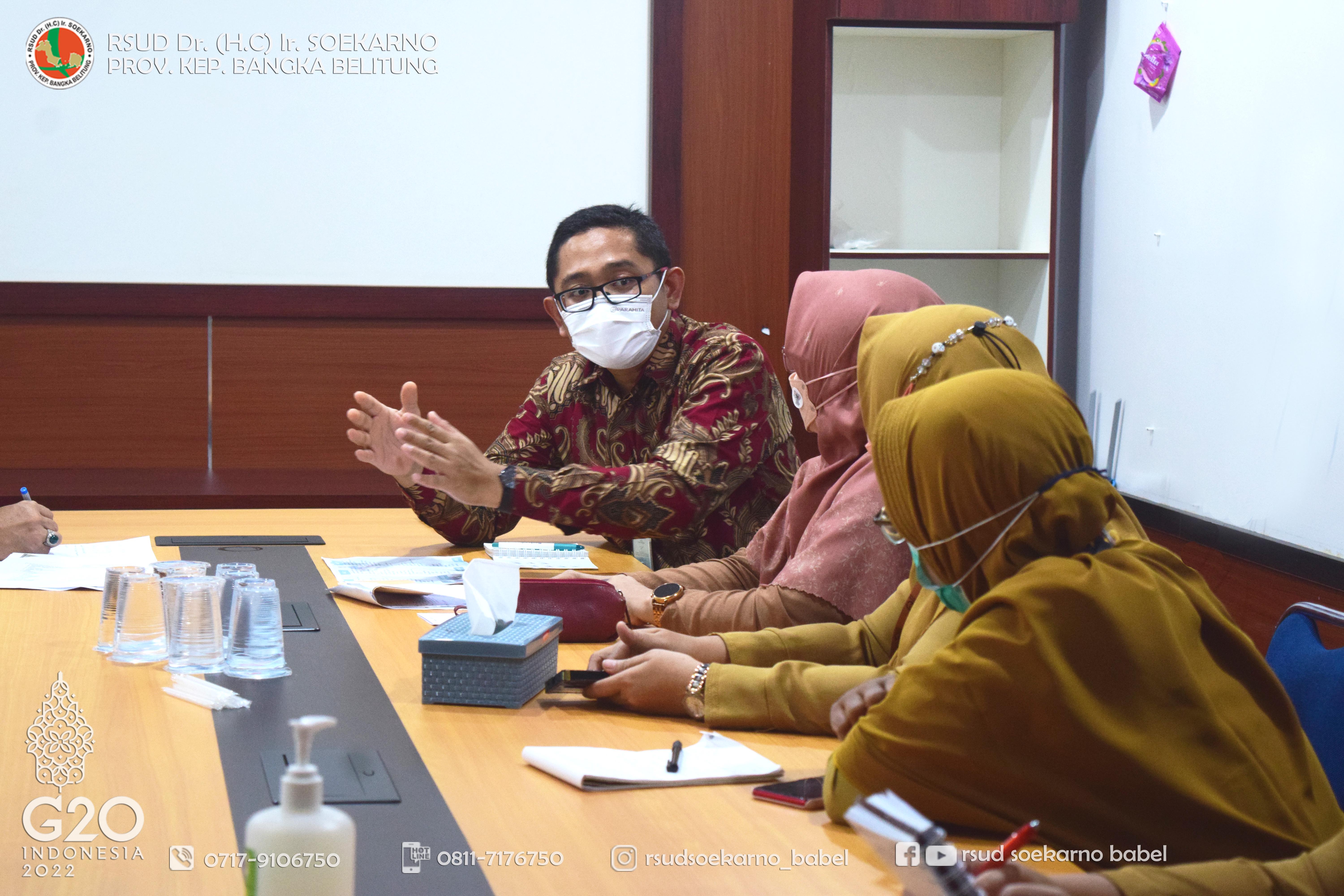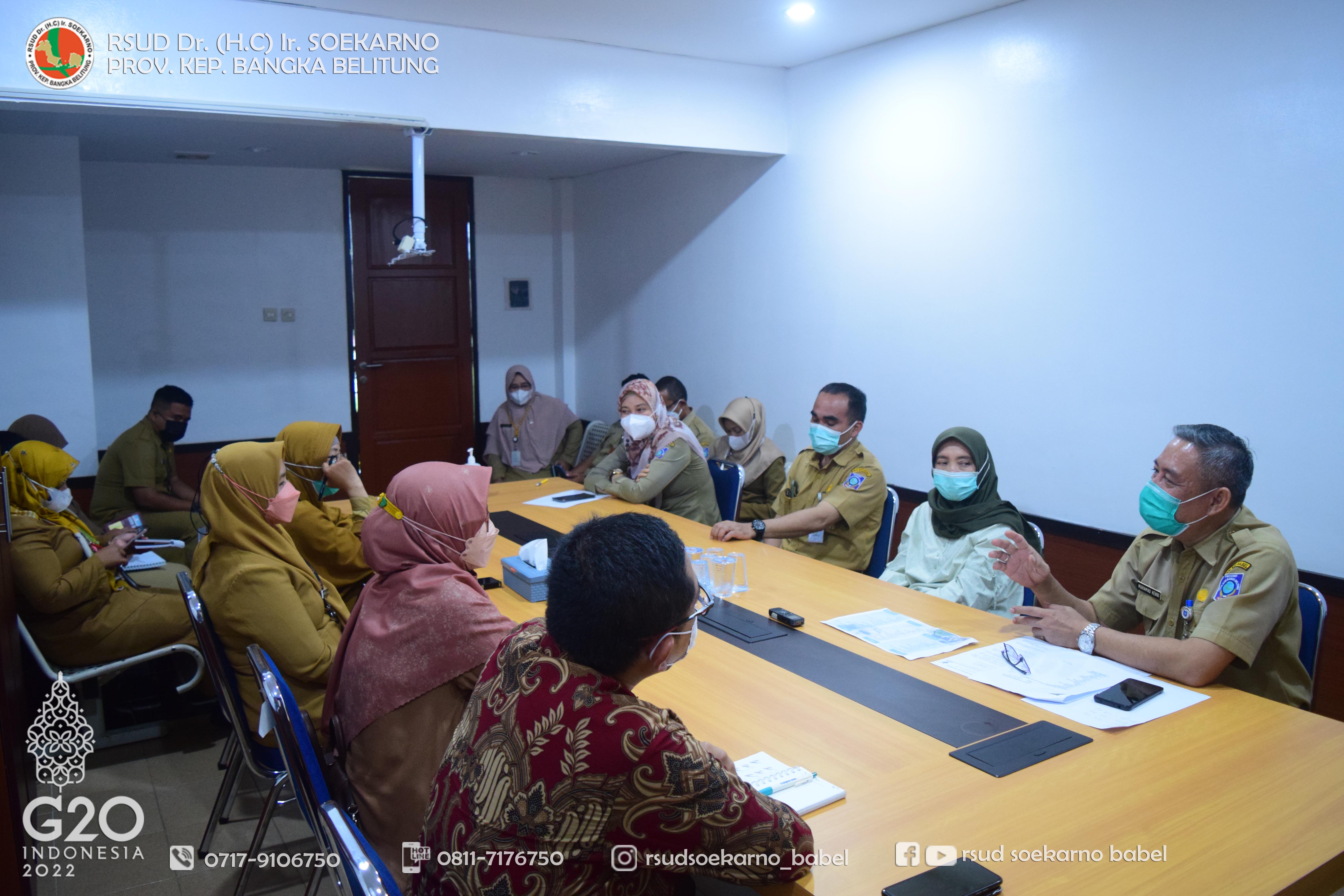 RSUD Soekarno Babel dipercaya sebagai faskes yang memfasilitasi Medical Check up bagi pegawai KPU se-Provinsi Kepulauan Bangka Belitung. Untuk itu, kemarin RSUD Soekarno Babel mengadakan rapat persiapan pelaksanaan Medical Check up tersebut di Ruang Rapat Manajemen Lt. 2, Selasa (18/10/2022).