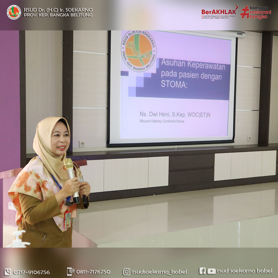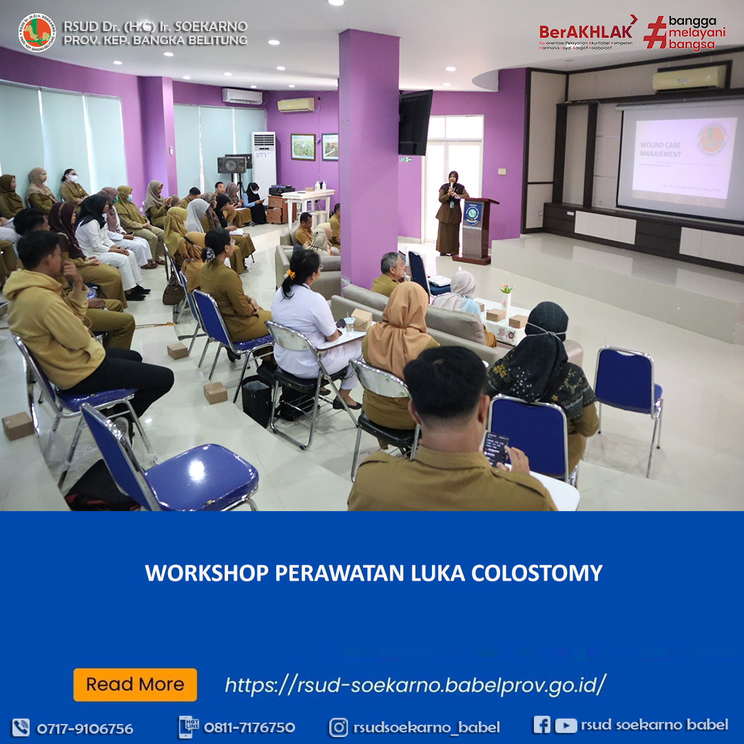 Dalam upaya mendukung dan meningkatkan pelayanan kepada masyarakat, maka RSUD Dr. (H.C) Ir. Soekarno Provinsi Kepulauan Bangka Belitung khususnya Bidang Keperawatan dengan Ketua Komite Keperawatan, Ns. Rylla Dwikanuary, S.Kep menggelar Workshop Perawatan Luka Colostomy bertempat di Gedung Eko Maulana Ali, Senin (29/07).