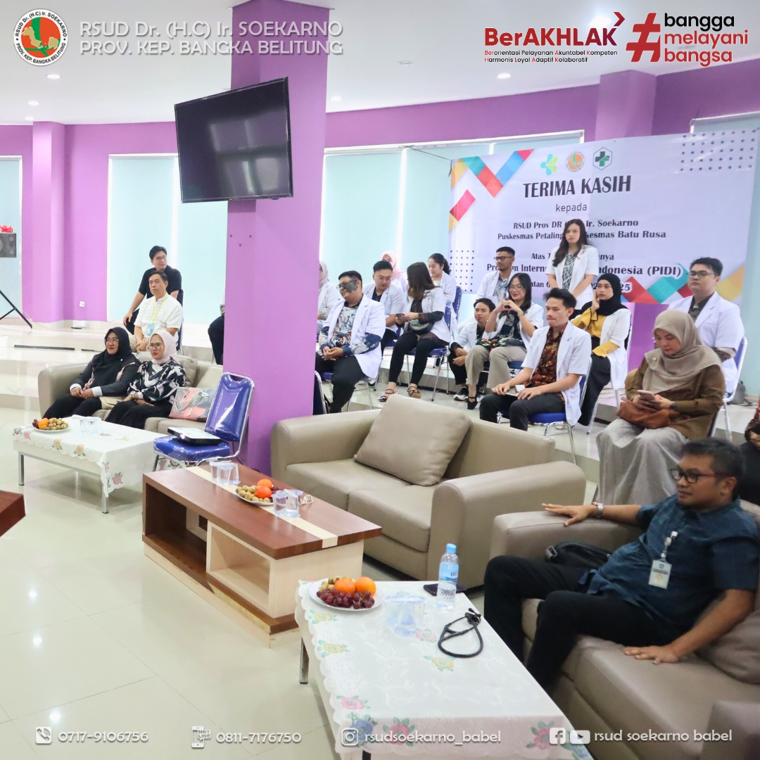 Turut hadir Wakil Direktur Pelayanan dan Keperawatan, H.M. Henri, SKM, M.Si, Pejabat Manajemen lainnya bersama dokter pendamping dan para dokter spesialis RSUD Soekarno Babel serta Perwakilan dari Puskemas Baturusa dan Puskesmas Petaling.